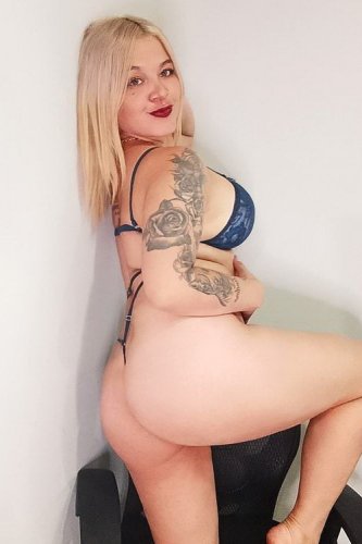 Ich bin blond, heiß, geil und will Spass haben. Ich gefalle gerne, spiele gerne, benutze meine heiße Spielzeugsammlung. Und ich habe keine Angst vor wirklich krassen Dingen, aber im Rahmen. Anal-Sex, Dominant, Gruppensex, Orgien, Outdoor, Rollenspiele, Tattoo und noch mehr machen mich beim Sex so richtig geil.